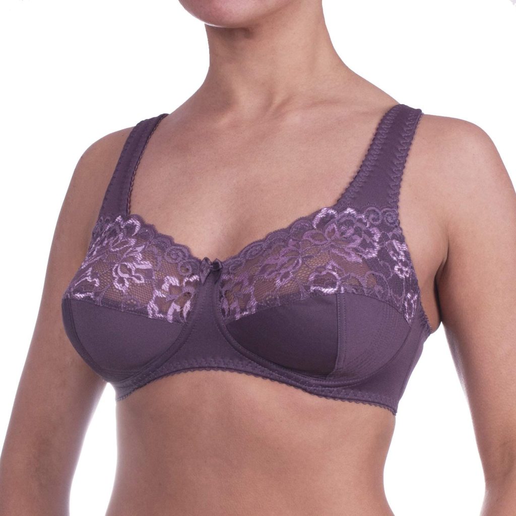 This unpadded and unlined full cups bra with a two-section cut decorated with Broderie Anglaise gives the bust a naturally pointed shape. This comfy bra is designed with our popular padded, adjustable comfort shoulder straps. The embroidery detailing is subtle, and the bra will remain smooth, looking great under any elegant blouse or casual T-shirt.