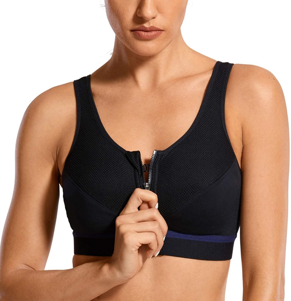 14. SYROKAN Women’s High Impact Wireless Cross Back Support Front Zip Sports Bra