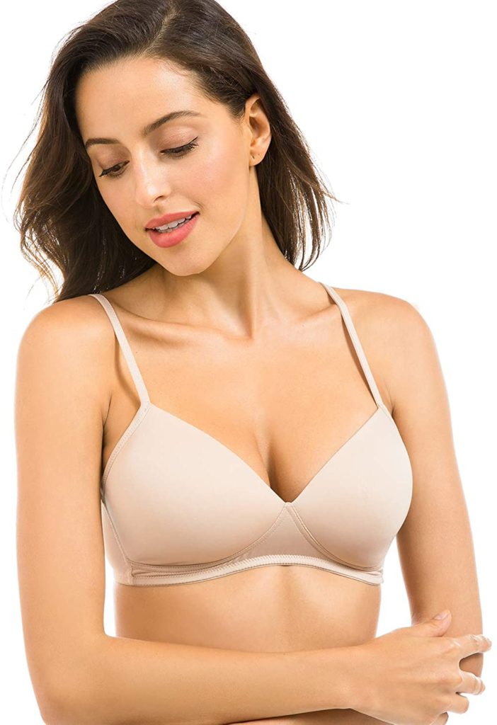 9. Delimira Women’s Smooth Wire-Free Lightly Padded Triangle Contour T-Shirt Bra