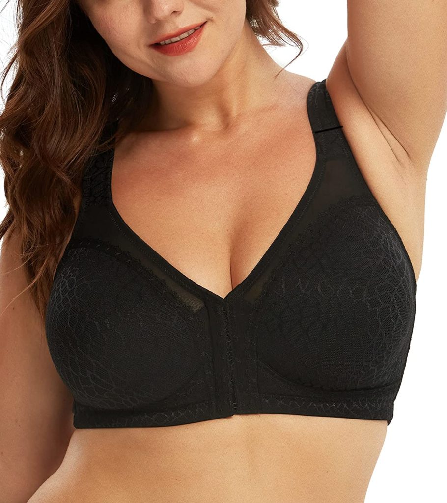 8. DotVol Women’s Full Figure Front Closure Wirefree Jacquard Back Support Posture Bra